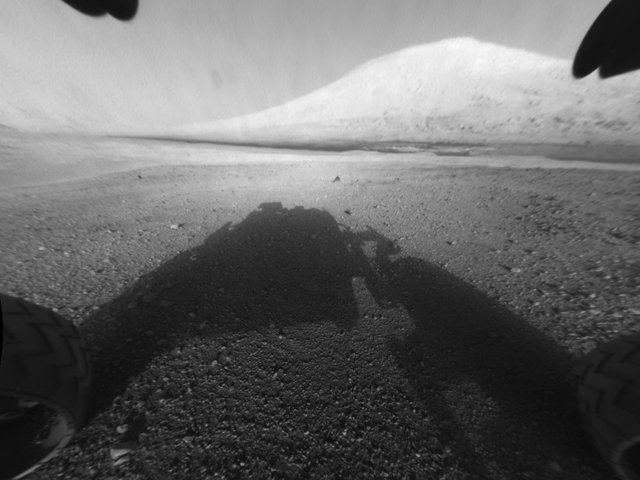 Après un voyage de huit mois, le rover américain Curiosity s'est posé sur mars sans encombre le lundi 6 août à 7h32 (heure française) pour une mission de deux ans. Sur cette image, l’une des premières transmises par le robot, se dessine le mont Sharp dont le sommet atteint 5 470m d'altitude. Cette montagne est une cible pour Curiosity qui doit y prélever des échantillons et rechercher des traces de molécules organiques indispensables à la formation de la vie.