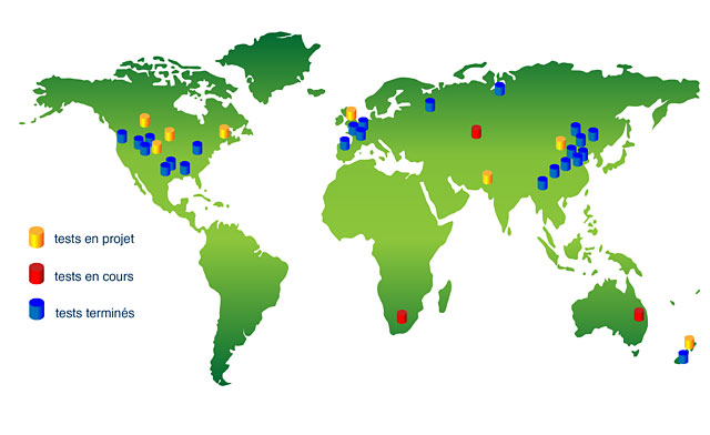 Des tests de gazéification souterraine du charbon ont été faits sur différents sites dans le monde.
