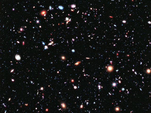 Cette image du télescope spatial Hubble, nommée XDF pour eXtreme Deep Field, offre la vision la plus profonde de l’Univers à ce jour. Elle est le fruit de 540 heures de pose. Plus de 5 500 galaxies sont visibles dans ce minuscule fragment de la voûte céleste. En extrapolant, on obtient plus de 200 milliards de galaxies observables dans l’Univers.