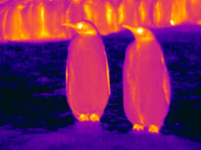 Manchots empereurs pris avec une caméra à thermographie infrarouge