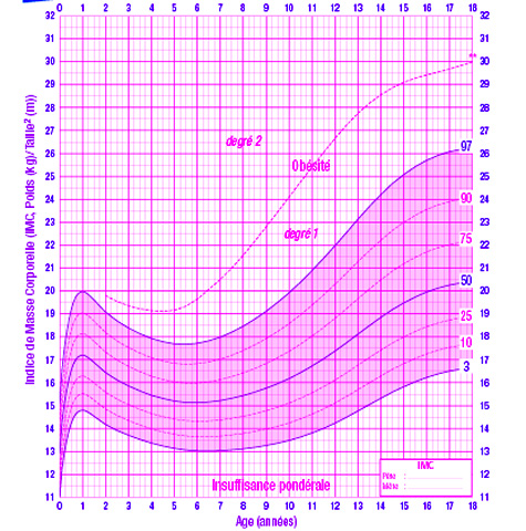 La courbe de corpulence chez les filles de 0 à 18 ans