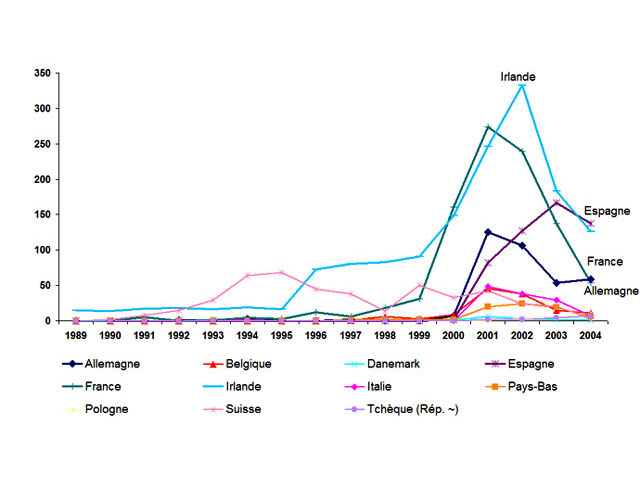 Incidence de l'ESB dans quelques pays d'Europe