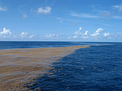 Longtemps redoutée à l’époque de la marine à voile, la mer des Sargasses est une zone où les périodes sans vent peuvent durer des mois et où les trois courants qui la bordent, le courant des Canaries, le courant nord-équatorial et le Gulf Stream convergent en son centre. Christophe Colomb, lors de sa traversée vers l’Amérique, y restera immobilisé trois semaines et donnera un nom à cette mer que ne borde aucune côte :sargazzo, qui signifie varech en italien, car de longues algues envahissent les lieux. Des conditions qui ont taillé une très mauvaise réputation à cette mer qui, comble de malédiction, se trouve à deux pas du triangle des Bermudes.