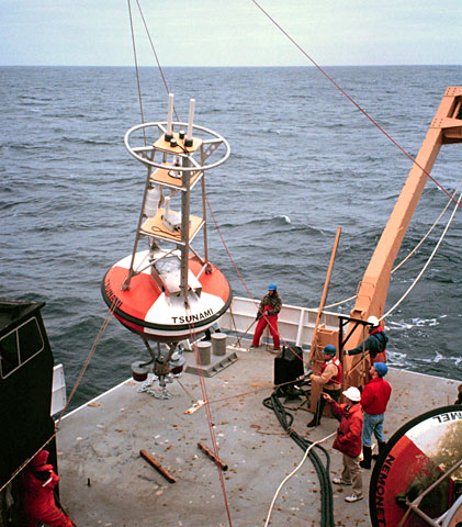Mise en place d'une balise du Tsunami Warning System in the Pacific