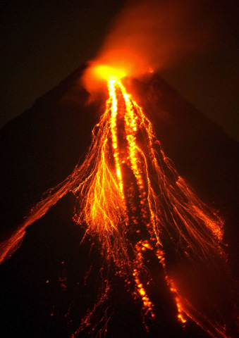 Le volcan philippin continue son activité éruptive commencée au début de l’été : de nombreuses explosions secouent le cratère sommital, sismicité et dégazage de SO2 sont très importants, une colonne de cendres incandescentes s’élève jusqu’à 800 m de haut et des torrents de lave s’écoulent sur ses flancs. L’alerte de niveau 4 a été instaurée : près de 45 000 personnes ont été évacuées dans un rayon de 8 km autour du volcan.