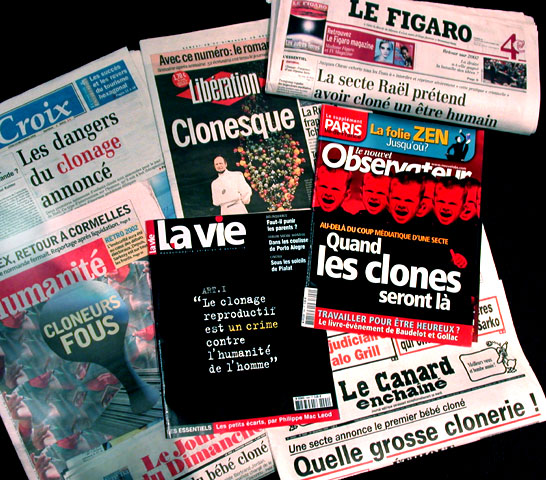 Malgré l'absence de preuve, l'annonce de la naissance du premier bébé cloné par les raéliens a été reprise par quasiment toute la presse française.