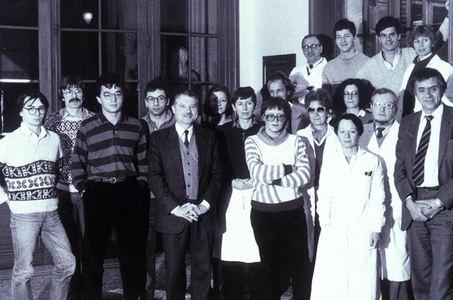 L'équipe complète de l'Unité d'Oncologie virale telle qu'elle était constituée en 1985.