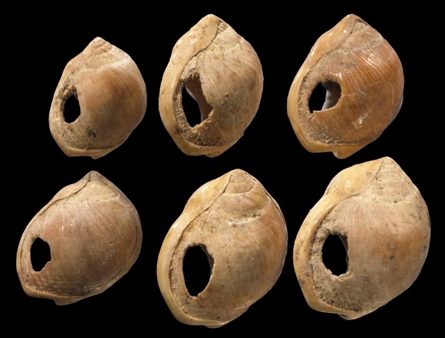 Avril 2004 : 41 fossiles de gastéropodes, portant la même perforation et les mêmes marques d’usure indiquant qu’ils ont été portés en parure, ont été retrouvés en Afrique du Sud dans des couches archéologiques datant de 75.000 ans.