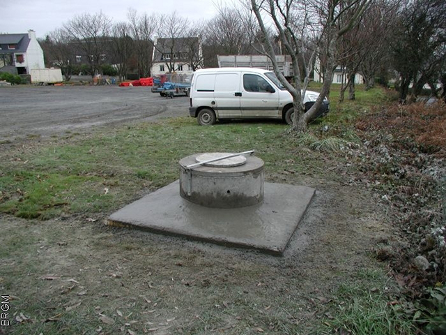 Partie visible d'un piézomètre. Sous cette "capsule"; de béton, un tube pouvant mesurer de 10 à 2000 mètres descend jusqu'à la nappe d'eau souterraine.