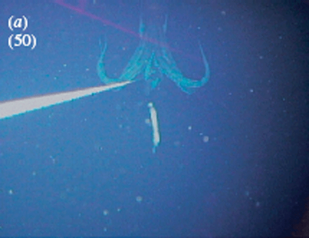 Pour la première fois, des scientifiques japonais sont parvenus à filmer un calamar géant de plus de huit mètres de long dans les profondeurs du Pacifique Nord. Attiré par un appât plongé à 900 mètres de profondeur, la créature s’est battue pendant quatre heures contre sa proie, avant de partir en laissant une tentacule longue de 5 mètres.