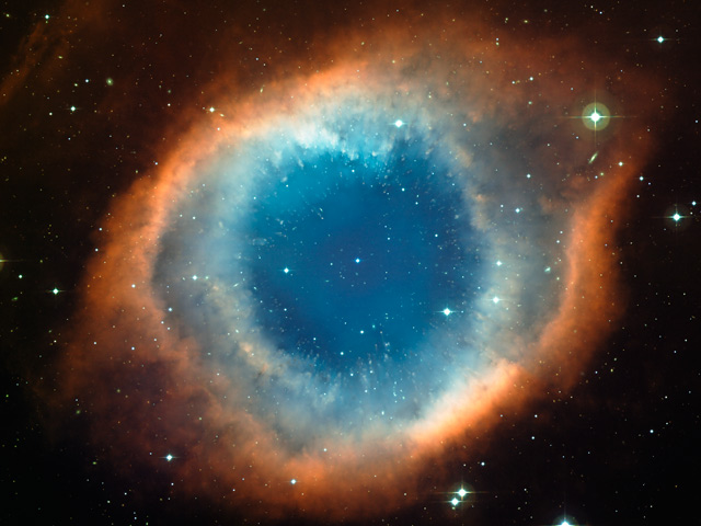 Réalisée à partir du télescope européen de 2,2 m de l’observatoire européen de La Silla (Chili), cette nouvelle image de la nébuleuse planétaire Helix se distingue par son exceptionnelle résolution, et révèle pour la première fois de très nombreuses galaxies lointaines visibles en arrière-plan. Situé à 700 années lumière, Helix – parfois dénommée « l’il de Dieu » – est constitué des restes gazeux d’une étoile en fin de vie. Dans 4 à 5 milliards d’années, notre soleil connaîtra la même destinée.