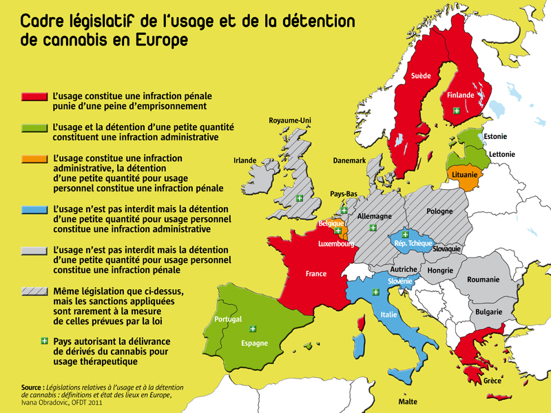 Cadre législatif de l'usage et de la détention de cannabis en Europe