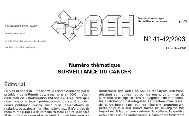 Le BEH du 21 octobre 2003 sur le cancer
