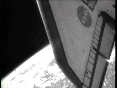 Les sept astronautes de la navette ont entamé, sans rien trouver, l'inspection des dégâts éventuels causés par la chute d'un petit bout de tuile et d'un autre débris non identifié peu après le décollage de la navette.