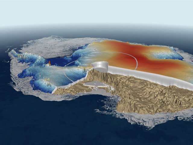 Grâce à son radar interférométrique, le satellite Cryosat-2 a commencé à cartographier les régions très proches des pôles, jamais explorées depuis l’espace. Ses premiers résultats, présentés au Salon du Bourget, ont déjà permis de mesurer l’altitude, et par extension l’épaisseur des calottes polaires et des banquises (ici, reconstituées en 3D). La mission de Cryosat-2 est prévue pour durer trois ans et devrait apporter des éléments déterminants pour la compréhension des changements climatiques en cours.