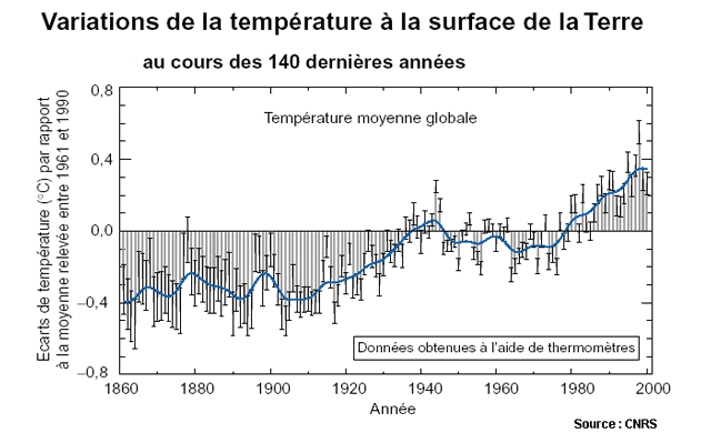 Les dix années les plus chaudes depuis 1861 sont toutes postérieures à 1987.