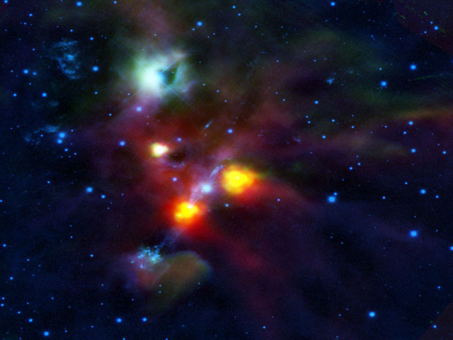 Lorsqu'une tache sombre est visible au beau milieu d’une nébuleuse, il s’agit généralement d’un nuage de poussière n’émettant aucune lumière. Mais grâce à la vision infrarouge du télescope spatial européen Herschel, la réalité apparaît parfois bien différente. Ainsi, la tache sombre visible en haut à gauche de la nébuleuse NGC 1999 (au milieu du nuage verdâtre) n’est pas un amas de poussière comme on le croyait, mais au contraire un vide créé par le vent stellaire d’une étoile en formation.
