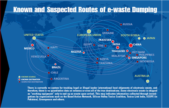 Carte des flux de déchets électroniques à travers le monde.