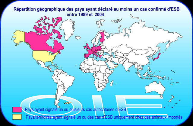 Répartition géographique des pays ayant déclaré au moins un cas depuis 1989