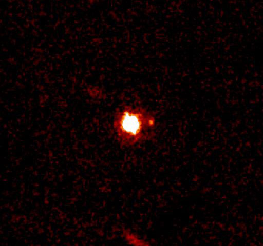 En utilisant la technique de l’optique adaptative (qui permet d’accroître la résolution des télescopes), des astronomes de l’observatoire Keck (à Hawaï) ont pu réaliser le 10 septembre 2005 une photo montrant sans ambigüité qu’UB313 possède un satellite naturel.