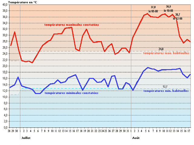 Températures quotidiennes durant l'été 2003