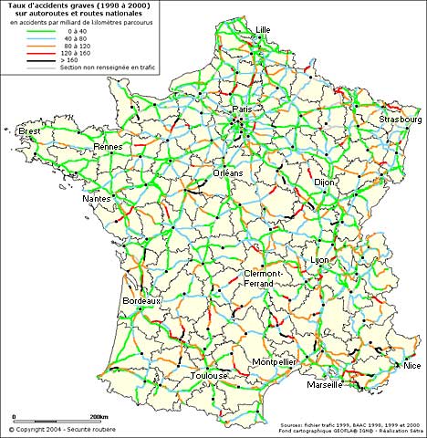 Depuis le 7 juillet, les automobilistes peuvent en un clic voir les routes où le risque d'accident est le plus élevé. Le taux d'accidents graves (au moins un blessé grave ou un mort) sur un tronçon de route correspond au nombre d'accidents observés divisés par le nombre de kilomètres parcourus par tous les véhicules sur cette section.