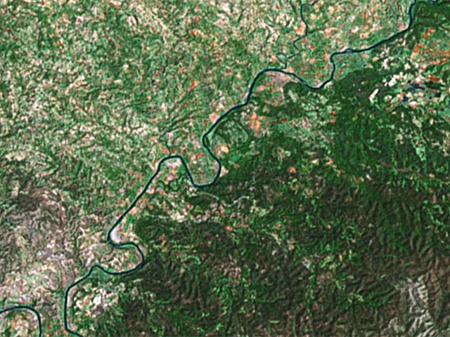 Vue satellitaire d'une frontière entre Haïti (à gauche) et la République Dominicaine.