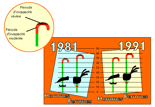 De 1981 à 1991, la période moyenne de dépendance ne s'est pas allongée, elle s'est déplacée vers de plus grands âges.
