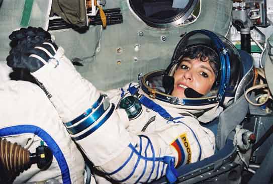 Claudie Haigneré en entraînement à la Cité des Etoiles à Moscou dans le simulateur Soyouz.
