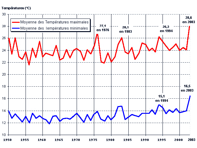 (Moyenne des températures pour la période du 1er juin au 11 août, de 1950 à 2003)