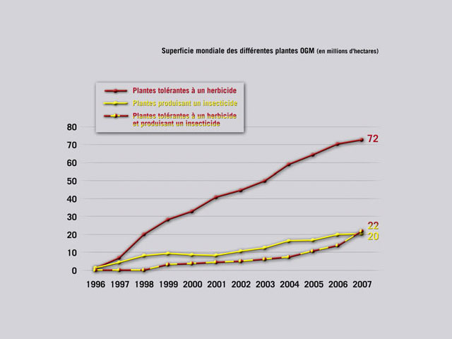 Superficie mondiale des différentes plantes OGM