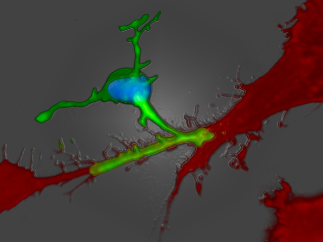 Grâce à ce type d’image, quelque peu énigmatique pour les non-spécialistes, une équipe américaine a pu suivre dans un cerveau de souris la migration des neurones nouveau-nés depuis le cervelet (là où ils se sont formés) jusqu’à l’endroit qu’ils vont occuper dans le cerveau.