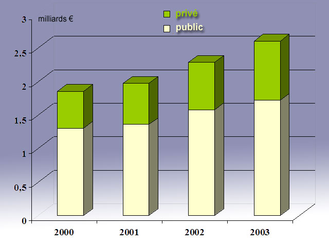 Le rythme d'augmentation de ce secteur a continué de s'accroître en 2003 avec une progresion de 13,7%, mais moins rapidement qu'en 2002 où la croissance s'était élevée à 16,2% (contre 6,3% en 2001 et 8,1% en 2000).