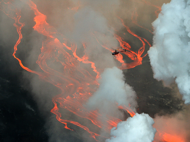 Sur l’île de La Réunion, l’éruption en cours est d’une intensité exceptionnelle. L’un des deux principaux cônes, le Dolomieu, s’est en effet effondré sur lui-même alors qu’il se trouve à plusieurs kilomètres de la faille, ouverte depuis dix jours, par où s’écoule la lave à raison de 3 millions de mètres cubes par jour. Cet « effet de vidange », comme le qualifient les spécialistes, a provoqué l’écoulement de torrents de magma à plus de 60 km/h jusque dans l’océan et... l’effondrement du sommet.
