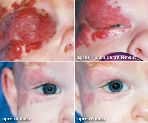 Dès les premiers jours de traitement, l'hémangiome commence à se résorber.