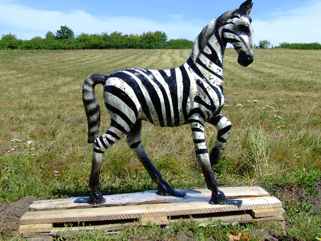Un piège à taons, à la surface collante, en forme de zèbre