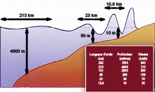 Pour de nombreux bateaux navigant en pleine mer, le phénomène est ainsi passé inaperçu. C’est seulement en se rapprochant des côtes que le raz-de-marée ou tsunami (“vague portuaire“ en japonais) s'est formé : en raison de la faible profondeur des fonds côtiers, la hauteur des vagues a augmenté subitement, atteignant jusqu’à 15 m dans certaines régions. (voir schéma)