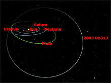 L'information semble confirmée : 2003 UB313, la « dixième planète », dont la découverte avait été annoncée durant l'été 2005, est plus grosse que Pluton. Selon l'étude* conduite par l'astrophysicien allemand Franck Bertoldi de l'université de Bonn, UB313 mesure 3000 km de diamètre (avec une incertitude d'environ 400 km), soit 700 km de plus que Pluton, la plus petite planète du système solaire.