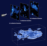 Malgré cela, grâce au programme d'observation COSMOS, une équipe internationale de 70 scientifiques dirigée par Richard Massey du Caltech vient de présenter* la toute première carte tridimensionnelle d'une fraction de cette mystérieuse « matière noire ».