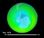 Mais plus de vingt ans après le protocole de Montréal, force est de constater que l'on n'observe aucune reconstitution flagrante de la couche d'ozone… La taille du « trou » semble jouer au yo-yo. Après avoir beaucoup augmenté dans les années 1980, il s'est stabilisé vers 1995. En 2002, on criait victoire devant une spectaculaire diminution de sa superficie. Mais un an plus tard, sa surface atteignait à nouveau les valeurs de la fin des années 90, soit autour des 25 000 km². En 2006, on battait même le record, avec une superficie de 29,5 millions de km². Selon le dernier bulletin de l'Organisation météorologique mondiale (OMM), cette superficie atteignait 27 millions de km² le 13 septembre 2008.