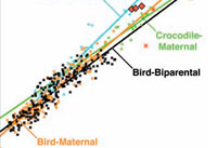 Et pour cause : en étudiant la physionomie des espèces modernes, oiseaux ou crocodiles, les biologistes se sont, depuis longtemps, aperçus qu'il existait une relation entre ces paramètres et le comportement d'élevage de la progéniture. Plus le mâle s'investit dans l'effort parental, plus le volume des couvées, pondéré par la masse corporelle de l'adulte, tend à s'accroître. Qu'en est-il, alors, de nos trois dinosaures ? Les résultats montrent que, d'un point de vue statistique en tout cas, ceux-ci se rapprochent des oiseaux dont seul le père couve ou élève sa progéniture.
