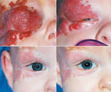 Le plus souvent, ce problème ne porte pas à conséquence car la grosseur régresse d'elle même dans les six premières années de vie. Mais pour 5% des cas - soit environ 4000 bébés par an en France - les choses ne se passent pas aussi bien. L'hémangiome est mal placé ou trop important. Il menace de défigurer l'enfant ou de gêner ses fonctions vitales. Dans ces situations critiques, les médecins sont contraints d'agir. Ils opèrent ou alors soumettent l'enfant à une chimiothérapie ou à des corticoïdes. Ces derniers, auxquels l'hémangiome ne répond que dans un tiers des cas, peuvent engendrer des retards de croissance ou de l'hypertension artérielle (en tout cas pour les corticoïdes).