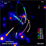 Le mouvement des étoiles autour du trou noir est un premier indice. À la manière des planètes qui tournent et gravitent autour du Soleil, les étoiles du centre de la Voie lactée orbitent autour d'une zone qui semble pourtant vide. Or, selon les lois de la mécanique céleste, seule une force exercée par un objet d'une masse équivalente à 4 millions de fois celle de notre Soleil peut imprimer de tels mouvements à son environnement. Et un unique objet remplit ces conditions : un trou noir, catégorie "supermassif".