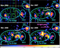 L'autre indicateur de la présence d'un trou noir est le rayonnement émis par la matière qu'il engloutit. Car, si les trous noirs sont invisibles, la matière qu'ils absorbent, entraînée dans un gigantesque tourbillon, s'échauffe et produit de la lumière : des rayonnements X et gamma que certains satellites lancés dans les années 2000 sont capables de détecter avec précision. Ce sont ces rayonnements qui ont été analysés par Régis Terrier et son équipe à partir des données récoltées par les satellites XMM Newton et Integral entre 2003 et 2009.