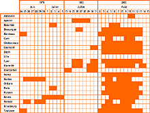 En moyenne, les températures maximales ont dépassé de 2°C celles atteintes lors des trois derniers étés les plus chauds, à savoir ceux de 1976, 1983 et 1994. Dans les deux tiers des stations météorologiques françaises, les températures maximales ont ainsi franchi les 35°C, 15 % d’entre elles ayant même atteint les 40°C.