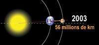 Le 27 août 2003, à 9h51'14'' TU, Mars et la Terre n'étaient distantes que de 55 758 millions de kilomètres. Un tel rapprochement ne s'était pas produit depuis 59 618 ans et il faudra désormais attendre 23 698 ans pour voir la planète rouge d'aussi près.