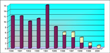 Ainsi, sur le graphique ci-contre, on remarque deux pics pour les années 1991 et 1992.