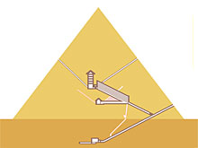 Jusqu'à présent, il était établi que la Pyramide de Khéops, deuxième pharaon de la IVème dynastie, possédait trois chambres dans son massif de 147 m de haut, 230,34 m de côté, d'un volume de 2,34 millions de mètres cubes, pour une masse de 4,7 millions de tonnes. Les trois projets successifs de chambres funéraires ont été abandonnés l'un après l'autre.