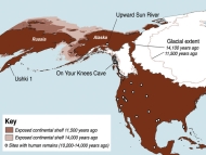 La découverte d'un foyer d'habitation sur le site d'Upward Sun River en Alaska, relatée dans la revue Science du 24 février, permet d'en savoir un peu plus sur le mode de vie des premiers habitants du continent américain. Les chercheurs ont découvert un trou creusé dans le sol de 1,30 m de large et profond d'environ 50 cm, dans lequel ils ont mis au jour des ossements de poissons, d'oiseaux et de petits mammifères (lièvre, écureuil, marmotte, etc.), vraisemblablement les principaux vivres consommés par les habitants du campement.