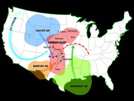 La région des grandes plaines américaines, surnommée aussi Tornado Alley, possède un relief propice à la formation de violentes tornades. Les masses d'air polaire, canalisées par les montagnes rocheuses, rencontrent l'air tropical venu du golfe du Mexique. «Ainsi, plus de 1000 tornades se développent chaque année aux Etats-Unis, selon Météo France, dont une vingtaine qui atteint les niveaux 4 ou 5 de l'échelle de Fujita».